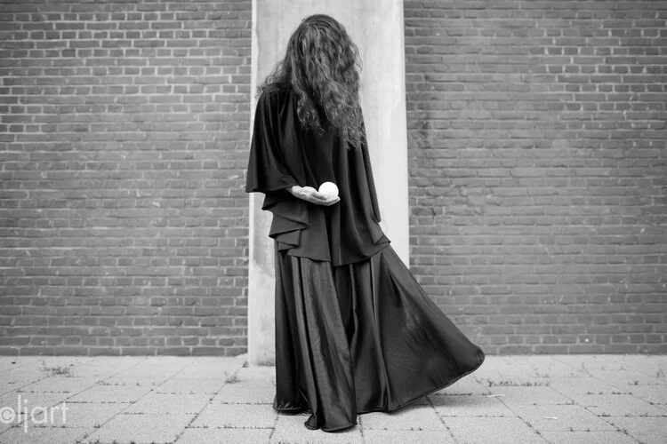 In dis.cover, Ariane is thinking about cloaking herself: re- and un-veiling body parts, movements and object manipulation. By that she not only discovers new aspects of her technique of full body ball manipulation, but also aspects of herself: a personality full of conflicts and paradoxes.